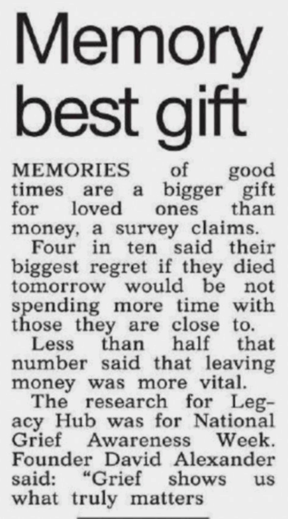 The research for Legacy Hub was for National Grief Awareness Week. Founder David Alexander said: “Grief shows us what truly matters”